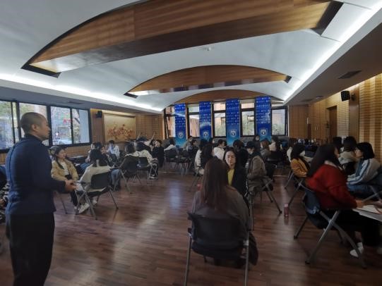 轻松愉快的破冰环节,孙老师带领本科新生充分互动,在分享各自名字的寓意、喜欢的歌曲、电影台词、偶像等的过程中相互熟悉起来,提升集体的凝聚力;汉硕2组的同学们在咨询师的鼓励下,随着欢快的音乐舞动身体,体验音乐与身心的奇妙联结。