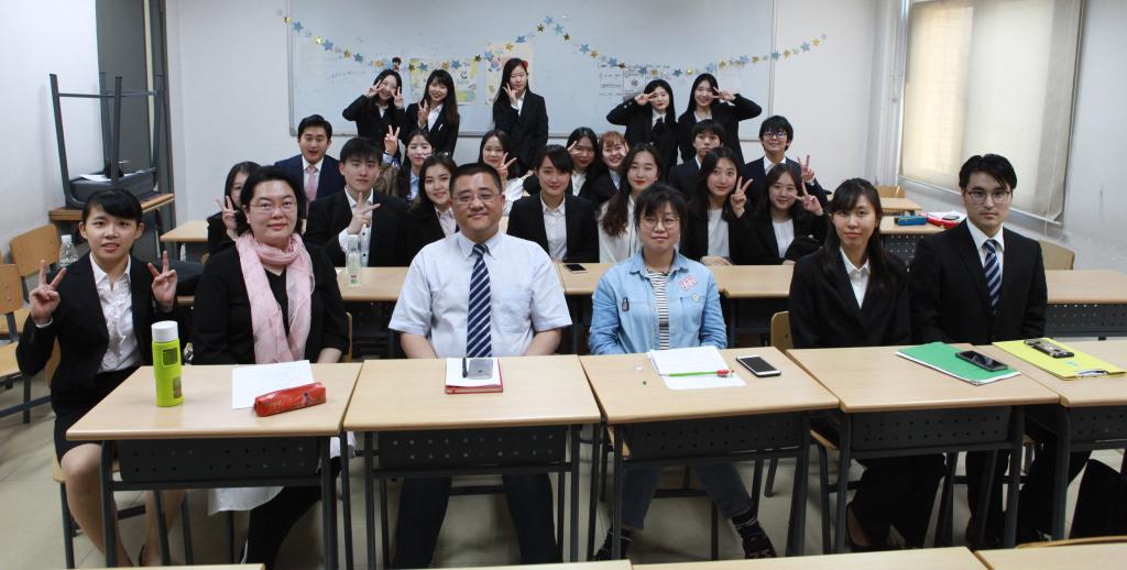 本次实习报告会在中文学院308教室、413教室两个会场同时进行。报告会还邀请了对外汉语系吕军、王宁军、孟德宏、蔡北国、赵真真、夏菁等六位教师组成了评审团,对报告进行了现场提问与评审。