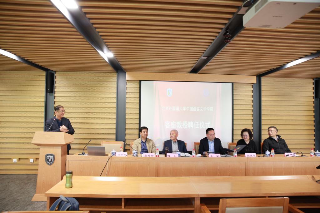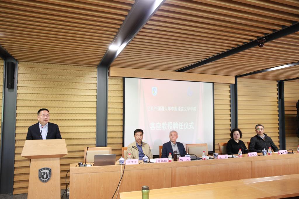 首先,袁军主任为傅刚教授颁发聘书并致辞。袁主任回顾了中文学院近几年的发展,并提到中文学科对北外的意义,强调:“没有好的中文学科,就没有好的外语学科。”在中文学院更上一层楼之际,傅刚教授的受聘为中文学院的长远发展带来了新的活力。