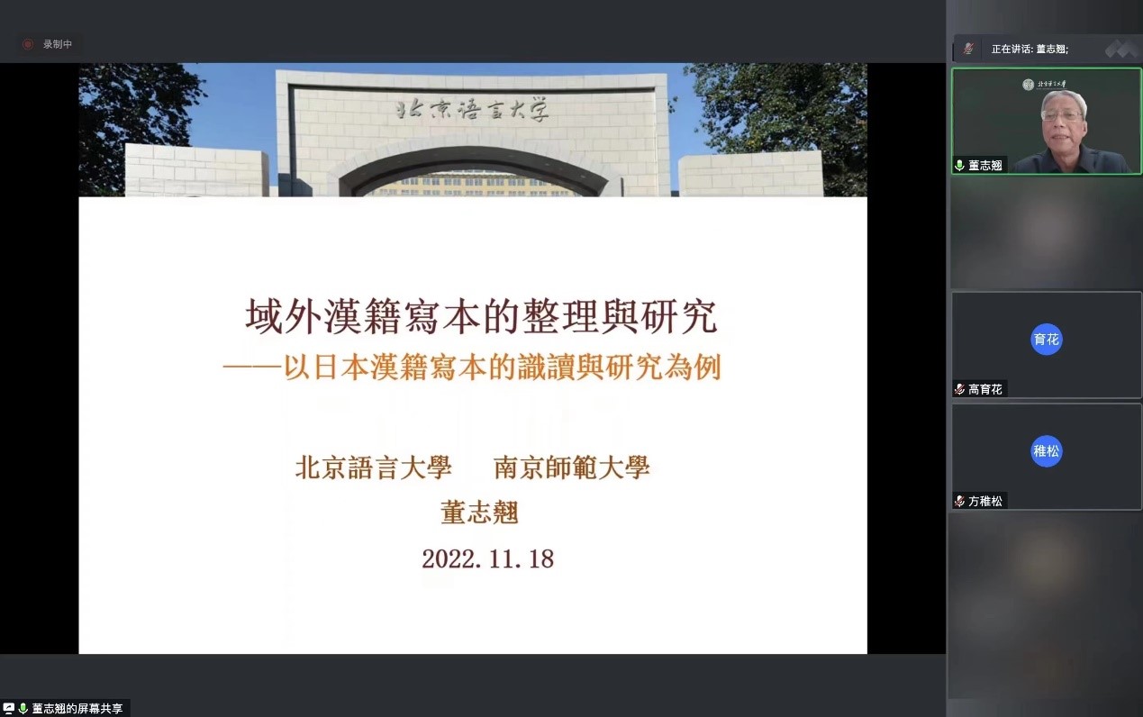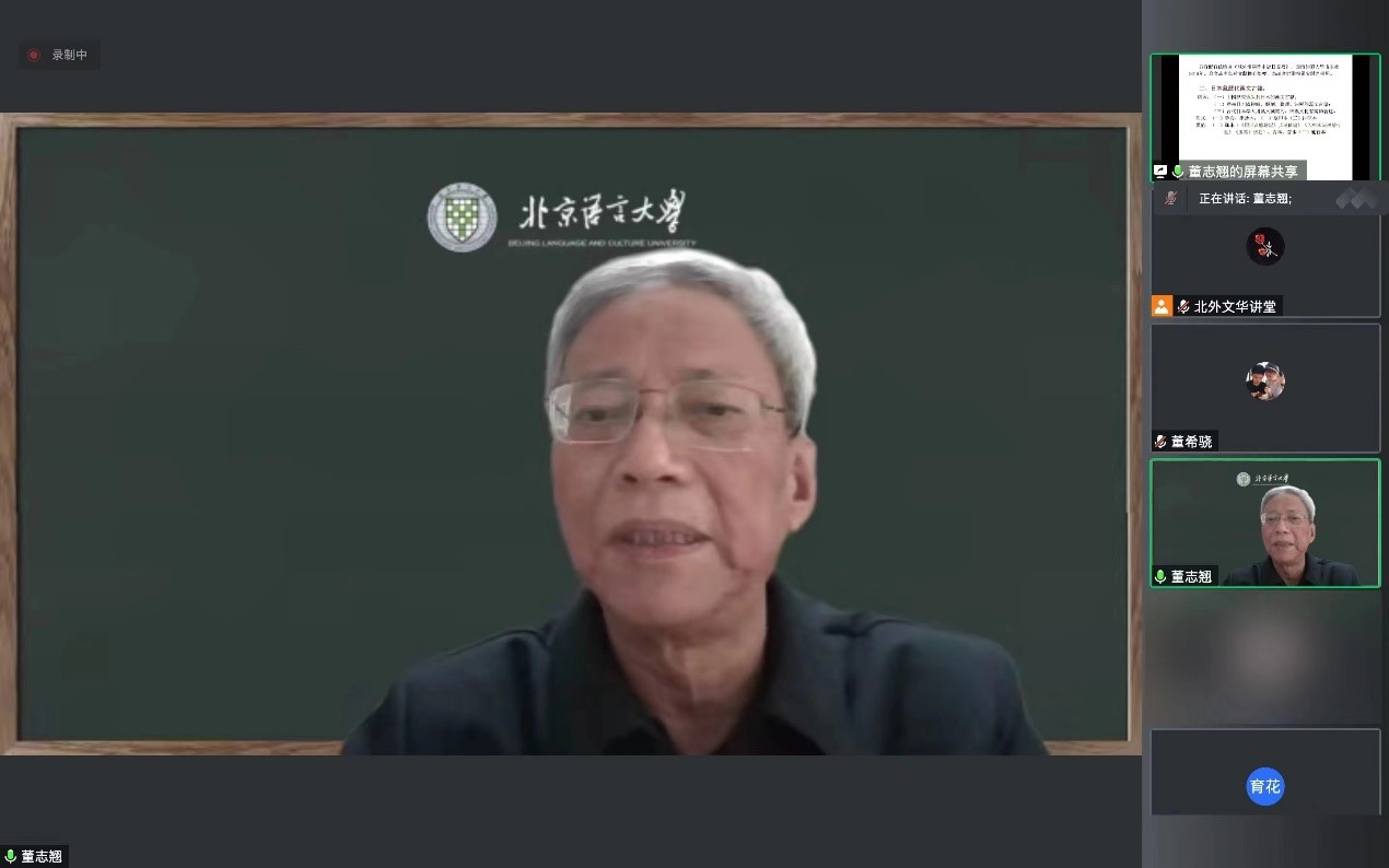 2022年11月30日,bv伟德国际1946bv伟德国际1946举办“北外文华讲堂”系列讲座,邀请国家级高等院校教学名师、北京语言大学特聘教授董志翘先生作题为《域外汉籍写本的整理与研究——以日本汉籍写本的识读与研究为例》的线上学术讲座。讲座由bv伟德国际1946高育花教授主持,副院长方稚松及校内外师生一百三十余人参与此次讲座。