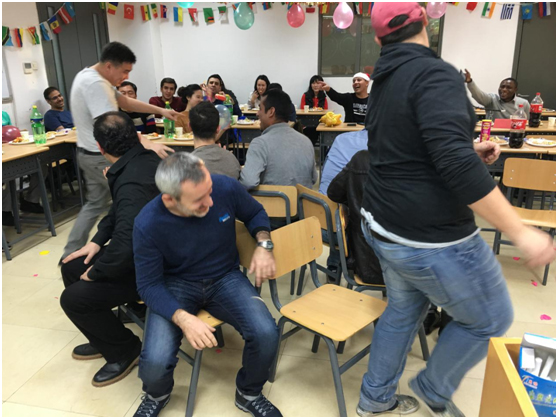 最后一个游戏环节是抢椅子游戏,考验大家的反应能力,项目部的老师们亲自参与到游戏中,与学员们一起踏着节奏舞蹈。最后尼泊尔学员卡莫还即兴为大家带来了精彩的舞蹈,菲律宾学员佳琳也献上了优美的歌声,中文学院项目部新年联欢会在大家的掌声和欢声笑语中落幕,这次联欢会不仅缓解了学员的学习压力和期末的紧张,同时加深了师生之间、同学之间的相互了解和感情,对接下来他们在中国的学习和生活都会有很大的帮助。