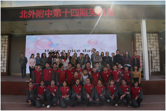 ??....10月13日,中文学院汉语培训中心的14名留学生来到北外附中,参加了一场别开生面的午间英语角活动。