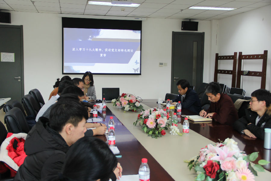 燕山大学外国语学院英语系党支部书记董哲老师介绍了学院的基本情况,重点以“深入学习十九大精神,促进党支部特色建设”为题,总结了燕山大学外国语学院通过观看十九大报告直播、发放学习读本、学习读物、学院集中学习、支部讨论、举办学习竞赛活动等多种方式学习十九大精神,取得了突出效果。