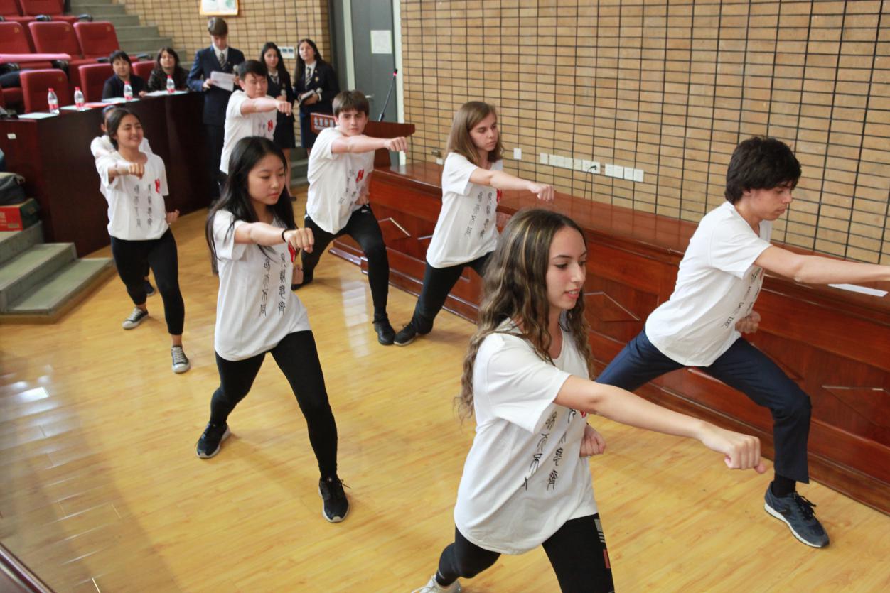 随后是高一年级武术表演,同学们身穿中文学院的院服,打出了一套漂亮的组合拳,动作连贯流畅,气势十足。