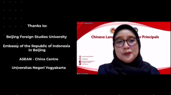 12月3日,由中国-东盟中心、印度尼西亚驻华大使馆主办,北外bv伟德国际1946承办的印度尼西亚中学校长中文研修项目顺利结业。来自印度尼西亚各省区80余所中小学的一百余名校长和教学管理人员共同参加了为期三周的线上中文学习。学员们跟随bv伟德国际1946的老师一起畅游中文的世界,学习了十余个日常交流话题,还参加了精彩的线上文化活动。学员们学习热情高涨,积极参与课堂互动,他们普遍反映项目教学话题实用,教材制作精美,教师敬业投入,给他们留下了深刻印象。