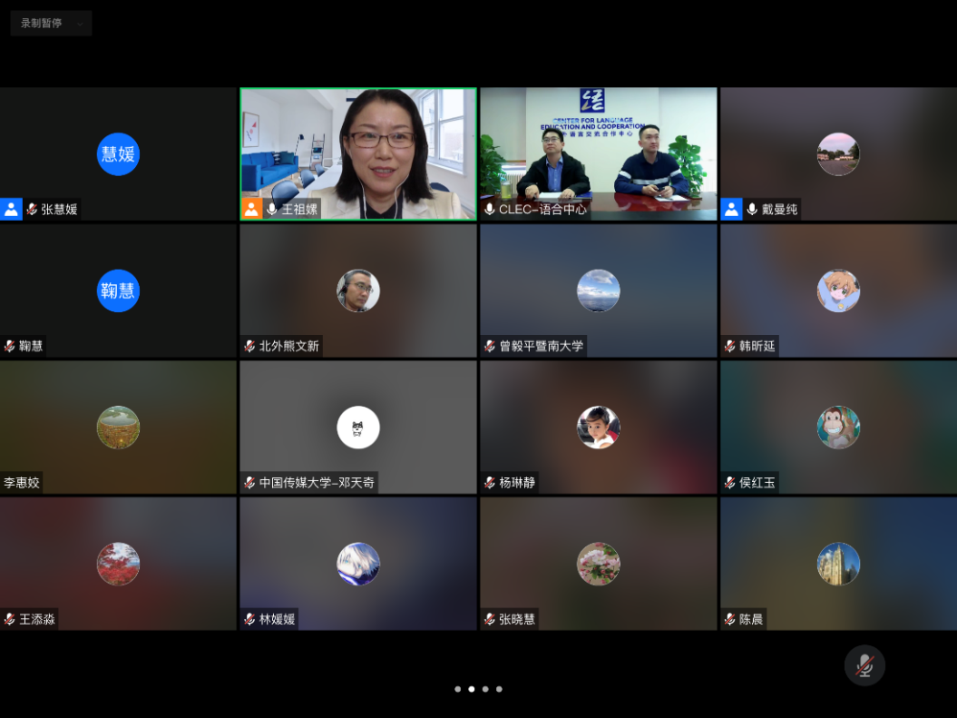 4月15日(周五)下午,《国际中文教育发展报告(2022)》第一次作者培训在云端顺利召开。中外语言交流合作中心政策研究处孟源处长、商若凡副处长,bv伟德国际1946中文学院李建盛教授、戴曼纯教授,外研社中国语言文化分社鞠慧社长以及《报告》编写作团队——来自全国知名高校的作者共计57人参加了此次培训会。