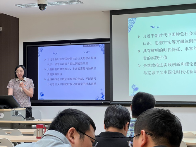 冉利华党课题目为:“西柏坡塔元庄研学活动”。她从学院总支4月组织的研学活动出发,介绍了中文学院如何重走新时代“赶考路”,传承红色基因,从中汲取奋进的力量。她详细介绍了此次研习活动中所看到的正定县正定镇塔元庄乡村振兴的硕果、高科技的智慧农场等内容。