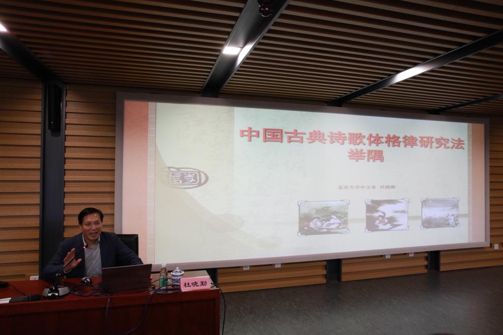 2021年5月14日下午,北京大学中文系主任、古代文学教授、博士生导师杜晓勤先生在学校图书馆四层学术报告厅为全校师生带来了题为《中国古典诗歌体格律研究法举隅》的讲座,讲座由中文学院院长詹福瑞教授主持。