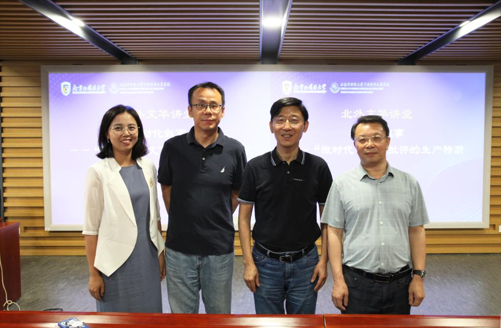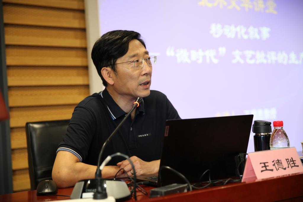 2024年5月22日下午,bv伟德国际1946bv伟德国际1946“北外文华讲堂”邀请首都师范大学艺术学部主任、艺术与美育研究院院长,中国文艺批评基地主任、文学院教授、博士生导师王德胜先生,作题为《移动化叙事——“微时代”文艺批评的生产特质》的学术讲座。讲座于bv伟德国际1946图书馆报告厅举行,由bv伟德国际1946执行院长李建盛教授主持,中文学院韩振华教授、李美玲老师以及师生百余人参加本次讲座。