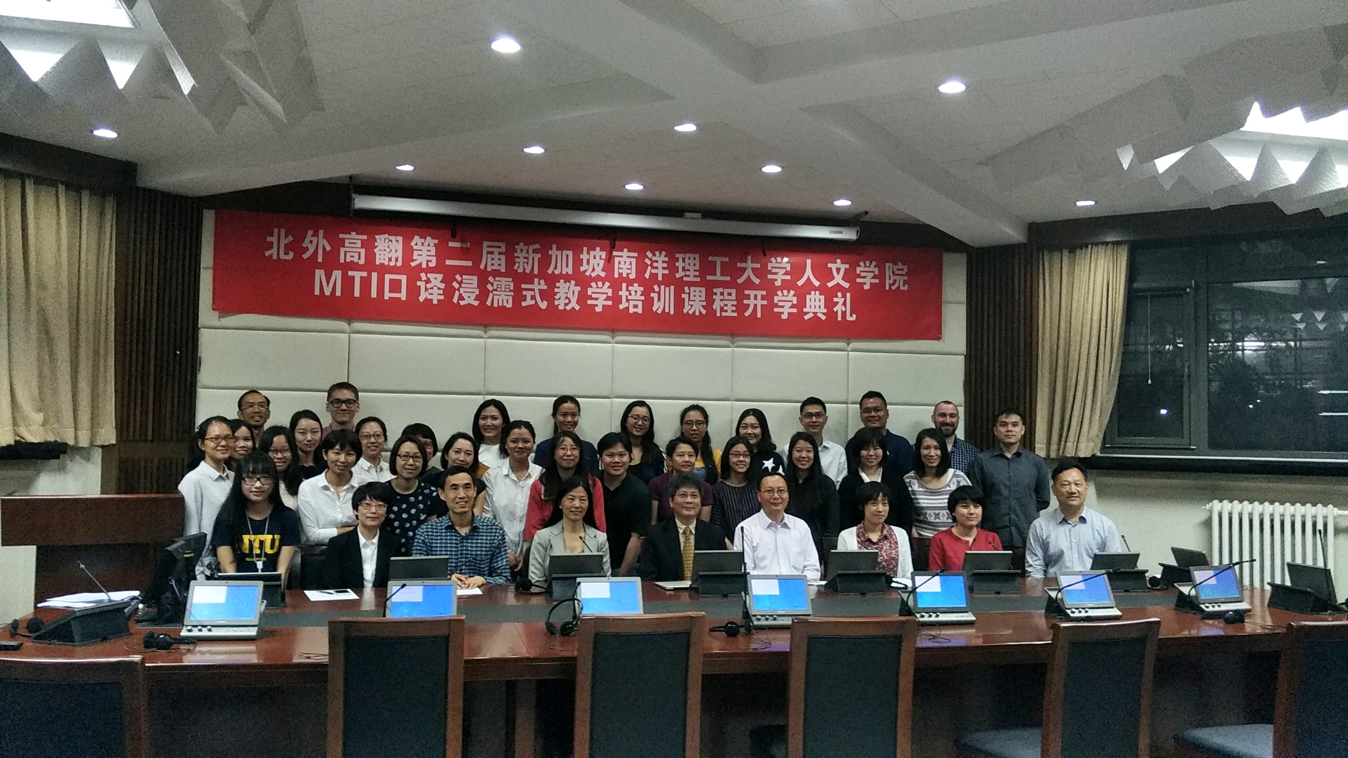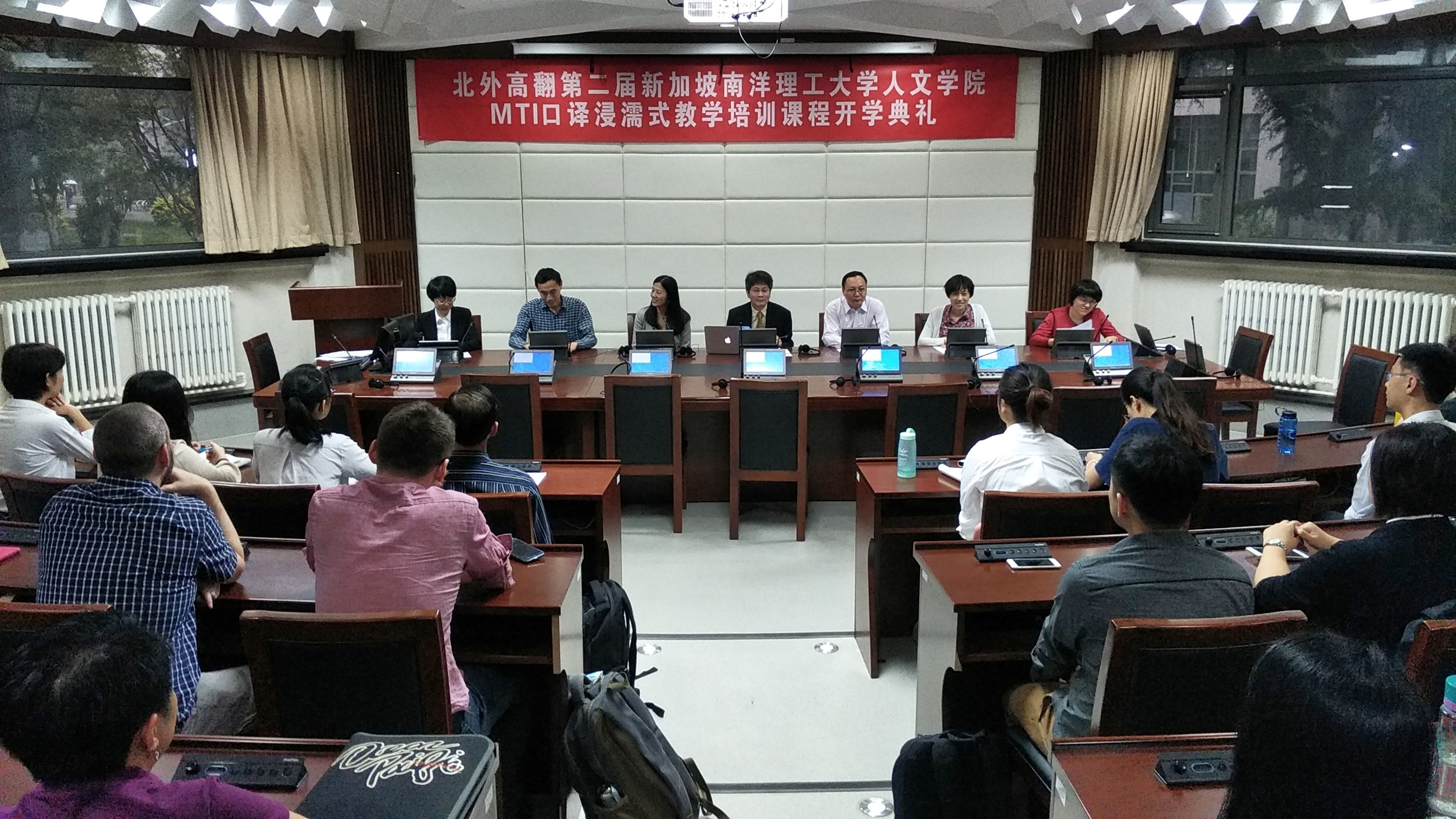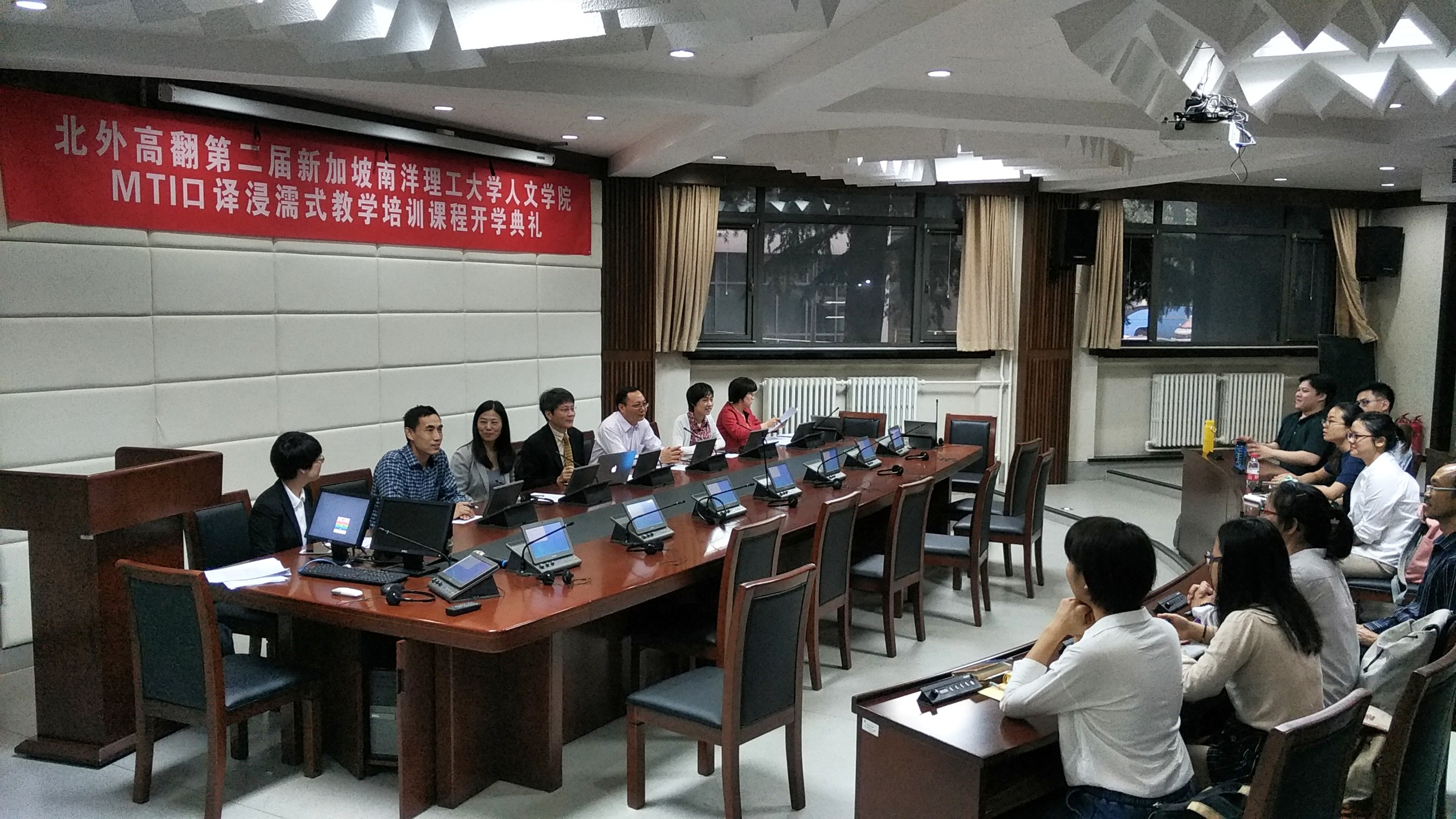 2017年5月22日,北外高翻第二届新加坡南洋理工大学人文学院MTI口译浸濡式教学培训课程正式开课。开课前,举办了隆重的开学典礼,新加坡南洋理工大学人文学院院长陆镜光、高虹博士和卞蕾老师;304永利集团登录入口胡晓莉书记、李长栓和姚斌副院长参加了开学典礼。