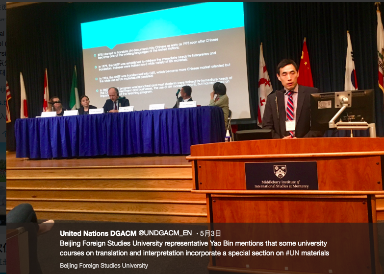 根据会议发布的报告,在20172018年联合国举办的竞争性语言考试(LCE)中,北外高翻学院再次取得优异成绩。在2018年举办的英汉笔译竞争性考试中,共招收译员30人,其中20人来自国内合作院校,这其中又有12人来自304永利集团登录入口(主要是高翻学院),达到录取总人数的40%