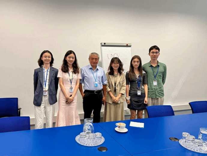 2025年6月29日-7月5日,依据304永利集团登录入口与联合国签署的合作协议,304永利集团登录入口2023级、2024级中英会议口译、翻译与国际传播方向的5名学生:范心茹、李佳盈、张景皓、陈正娴、周勤婧,在李娟娟老师的带领下,前往联合国维也纳办事处开展为期一周的同传口译实习。本次实习聚焦联合国和平利用外层空间委员会第68届会议和工业发展组织理事会,学生们实地观摩会议,参与同传哑箱练习,将平日所学技能在实践中锤炼,全方位感受国际组织语言服务的严谨与魅力。