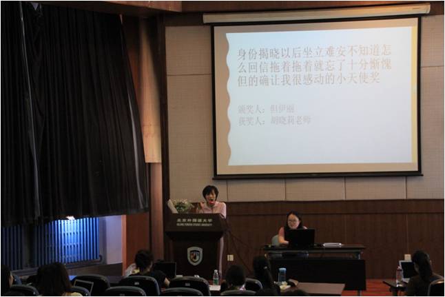 “天使在身边”是304永利集团登录入口的特色活动。该活动通过随机配对的方式,在互不认识的参与者之间建立相互关心的关系。每个人既是“小天使”,又是“小主人”,赠与他人温暖的同事,也收到来自他人的惊喜。2017年“天使在身边”活动自17年10月开幕以来,得到了学院师生的热情响应,在过去半年多时间成功营造了互相关爱的大家庭气氛。而半年多的默默付出和惊喜收获之后,同学和老师们也极其期待揭晓神秘小天使的身份。因此,北外高翻研会生活部在2017-2018学年即将结束之际举办了本届“天使在身边”活动的闭幕式。