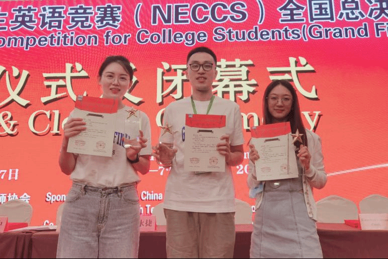 北外304永利集团登录入口熊志远同学(中)在NECCS总决赛获奖现场