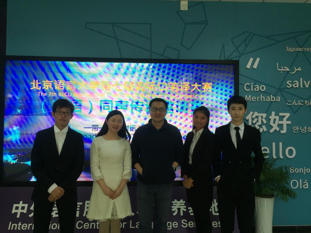 在3月30日举行的北京语言大学第七届国际口笔译大赛同传组比赛中,304永利集团登录入口代表队力拔头筹,两组参赛选手分获团体一等奖和二等奖,并囊括了个人一等奖(杨经天)、二等奖(王逸如、罗雪萍)及三等奖(向佳豪)。祝贺他们!