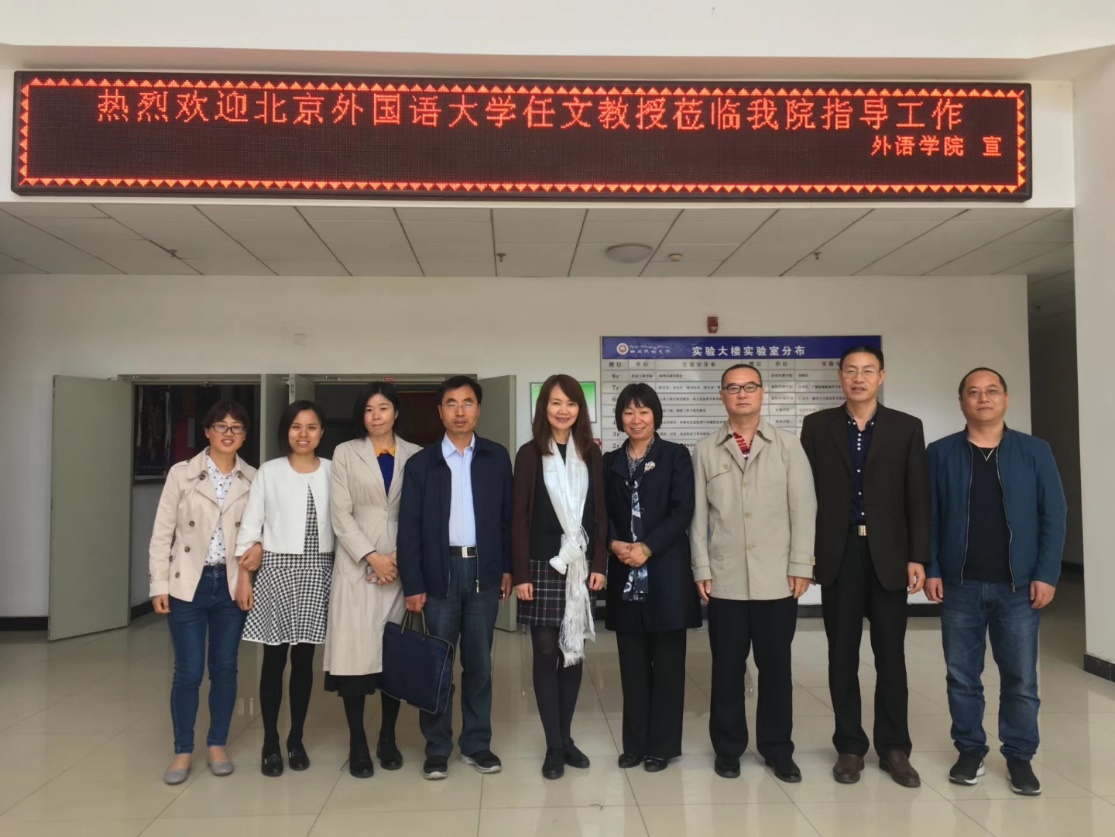 2018年4月26日,应北外对口支援学校西藏民族大学外语学院邀请,我院博士生导师任文教授到访西藏民大外语学院并作学术讲座。上午,西藏民族大学外语学院领导及教师代表与任文教授举行座谈。学院党委书记高全孝向任文教授敬献哈达,院长赵家红致欢迎词,并向任文教授简要介绍了学院的基本情况,希望任文教授对学院MTI培养方案和学科建设提出建议。任文教授作为全国翻译专业学位研究生教育指导委员会学术委员会成员,结合自己多年的工作经验,肯定了西藏民大外语学院翻译专业硕士培养方案中突出藏族文化的办学特色,认可培养方案中学制、课程设置等方面的安排,并就学分设置、课程的学期安排、毕业论文和翻译实践等方面提出了自己的意见和建议。另外,任文教授还就其他科研问题与在座老师进行了交流。