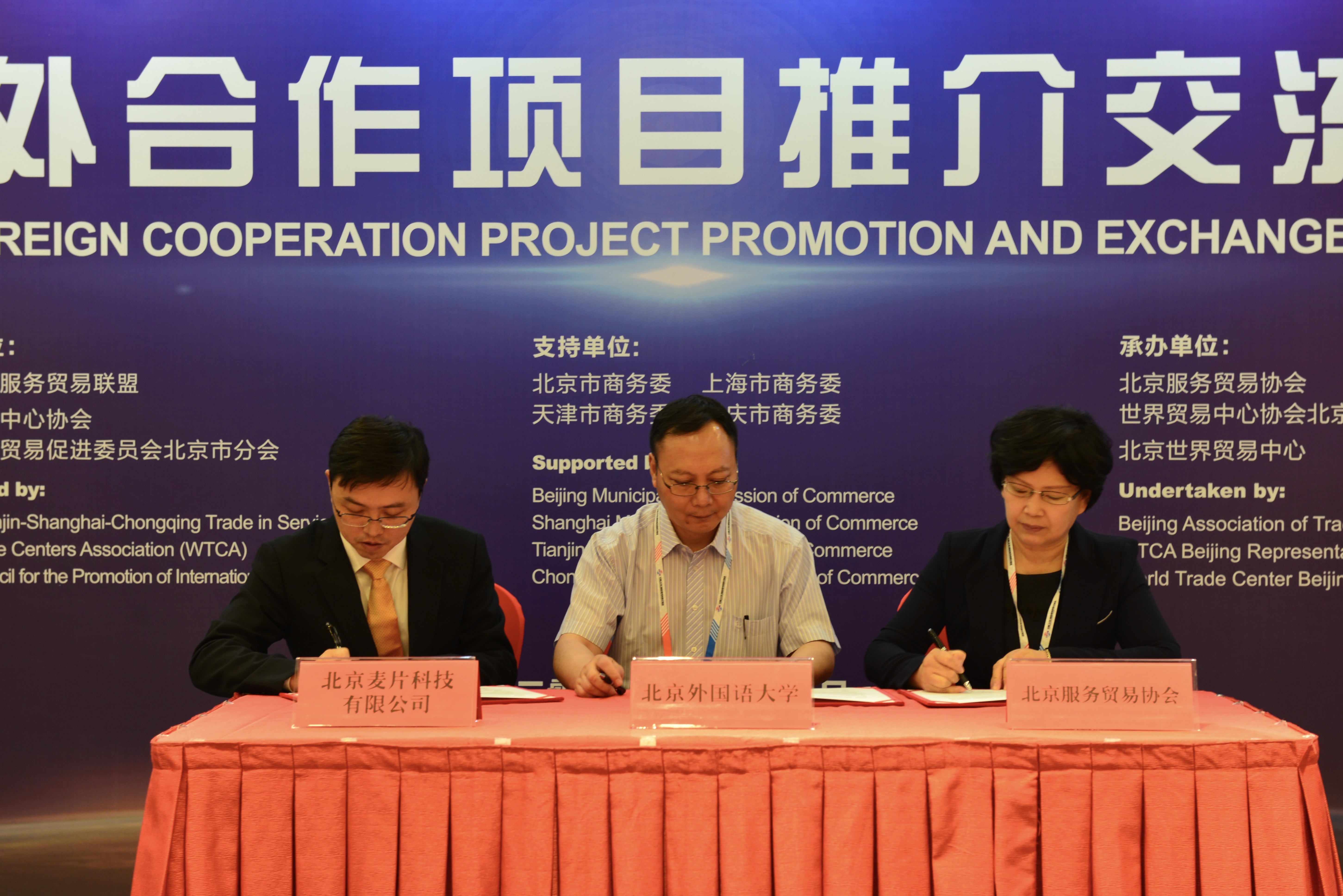 由北京市服务贸易协会、304永利集团登录入口、北京麦片科技有限公司共同建立的北京文化贸易语言服务基地在京交会上举办了合作签约仪式。