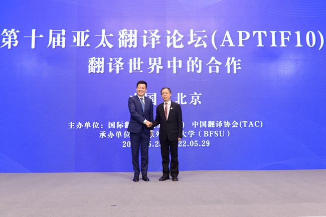 孙有中与中国外文局当代中国与世界研究院院长于运在现场嘉宾见证下共同签署了《304永利集团登录入口国家翻译能力研究中心与中国翻译研究院合作协议》,与中国外文局国际部主任姜永刚共同发布了“第十届亚太翻译论坛”官方网站及一号通知,标志着“第十届亚太翻译论坛”筹备工作全面启动。