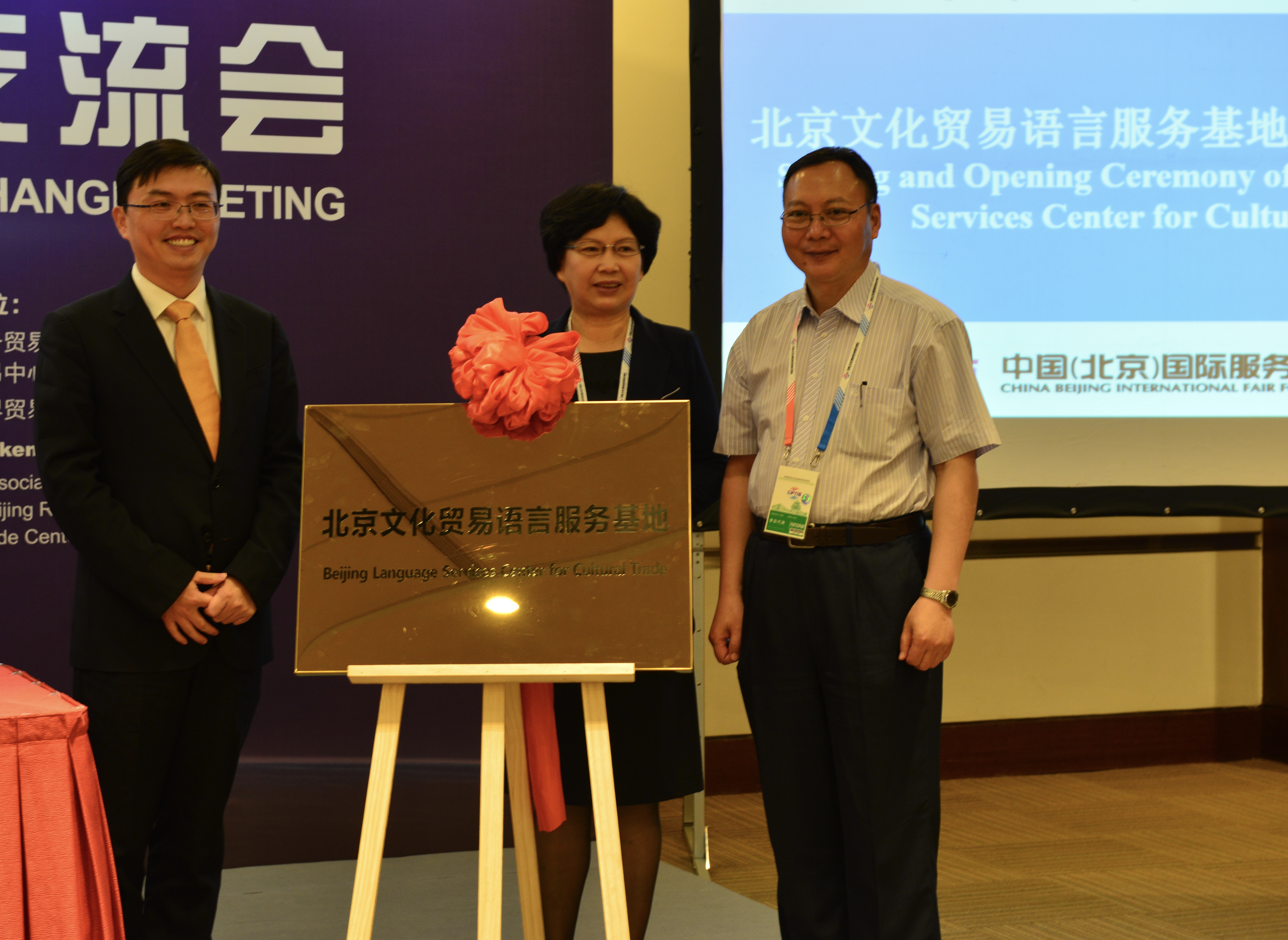 北京服务贸易协会会长李露霞女士、304永利集团登录入口副院长李长栓教授、北京文化贸易语言服务基地负责人毛隽博士签约并共同为北京文化贸易语言服务基地揭牌。