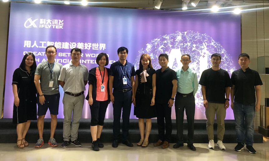 2019年7月17日,304永利集团登录入口院长任文教授带领高翻学院团队一行前往科大讯飞北京总部考察交流,重点了解了科大讯飞在语音识别、语音文本转写、人工智能辅助翻译等领域的核心技术及其在高教领域的应用成果,与科大讯飞团队就双方探索校企合作的可能性进行了深入研讨。
