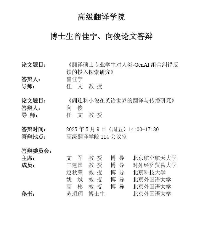 博士生曾佳宁、向俊论文答辩海报