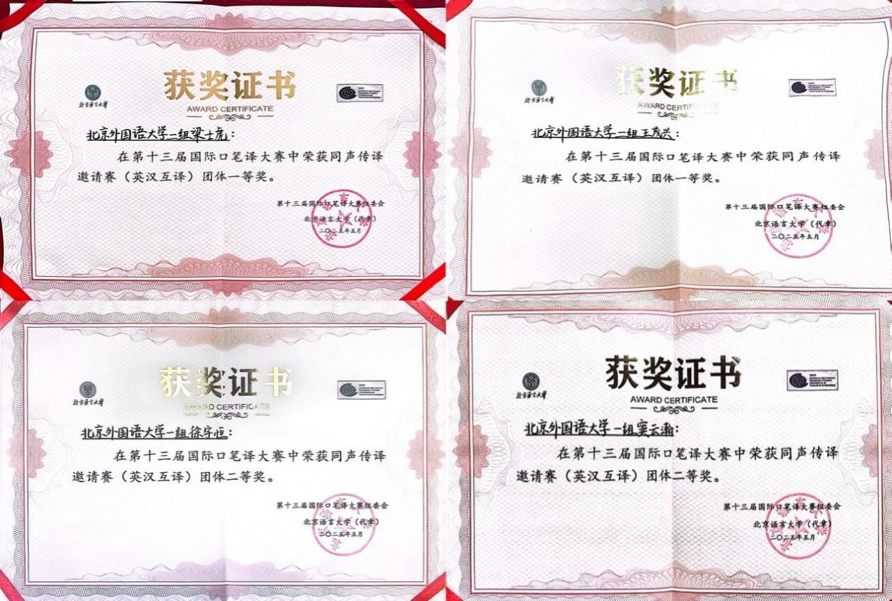 2025年5月24日,第十三届国际口笔译大赛同声传译邀请赛(英汉互译)决赛圆满完赛。我院四名学生包揽团体冠亚军、个人冠季军,荣获一、二、三等奖。