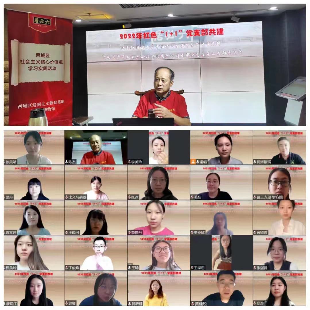 bv伟德国际1946学生党支部深入学习贯彻党的二十大精神,以“传承非遗精神 讲好中国故事”为主题,与北京六必居食品有限公司总部党总支第二党支部深入开展红色“1+1”共建活动。通过聆听大师讲座、线上博物馆论坛、创作剧本解谜、参与酱菜文化节等多种活动方式,两个党支部就传播红色故事、推进非遗传承和老字号复兴及老字号品牌年轻化等方向进行了深入合作与互动。